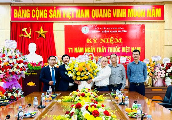 Nhân dịp này, Bệnh viện trân trọng được đón nhận lẵng hoa tươi thắm cùng những lời chúc mừng của đồng chí Nguyễn Doãn Anh - Uỷ viên Trung ương Đảng, Bí thư Tỉnh ủy gửi tới tập thể lãnh đạo, cán bộ, viên chức và người lao động Bệnh viện. Đây là nguồn động viên tinh thần, góp phần tạo động lực cho đội ngũ y, bác sĩ bệnh viện Ung bướu tỉnh Thanh Hóa hoàn thành tốt hơn nữa sứ mệnh bảo vệ, chăm sóc sức khỏe nhân dân.