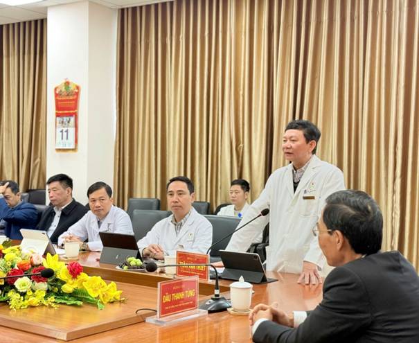 Về phía Bệnh viện Ung bướu tỉnh Thanh Hóa, lãnh đạo bệnh viện đã báo cáo với đồng chí Đầu Thanh Tùng - Tỉnh ủy viên, Phó Chủ tịch Ủy ban nhân dân tỉnh và các đồng chí trong đoàn về công tác khám, chữa bệnh của đơn vị năm 2025, những nỗ lực của cán bộ, y, bác sỹ với tiêu chí lấy người bệnh là trung tâm và chất lượng khám, chữa bệnh là ưu tiên hàng đầu, bệnh viện không ngừng nâng cao và phát triển chuyên môn kỹ thuật cao. Cụ thể trong năm 2025, Bệnh viện tiếp tục đột phá và triển khai thành công nhiều dịch vụ kĩ thuật mới như: Độ tập trung I131 tuyến giáp; Xạ hình thông khí phổi với 99mTc-DTPA; Nội soi phế quản dưới gây mê; Nội soi phế quản ống mềm sinh thiết niêm mạc phế quản; Nội soi phế quản ống mềm; Xạ hình u máu trong gan với hồng cầu đánh dấu 99mTc; Sinh thiết tiền liệt tuyến qua trực tràng dưới hướng dẫn siêu âm; Dẫn lưu đường mật số hóa xóa nền; Phẫu thuật thu nhỏ vú phì đại; Dẫn lưu bể thận số hóa xóa nền; Phẫu thuật nội soi cắt tử cung hoàn toàn để lại 2 phần phụ; Phẫu thuật cắt bỏ tuyến vú phụ ; Tái tạo tuyến vú sau cắt ung thư vú; Phẫu thuật nội soi cắt tử cung hoàn toàn + cắt 2 phần phụ; Sinh thiết xương dưới cắt lớp vi tính; Phẫu thuật lấy nang rò khe mang II;