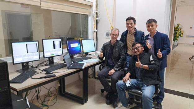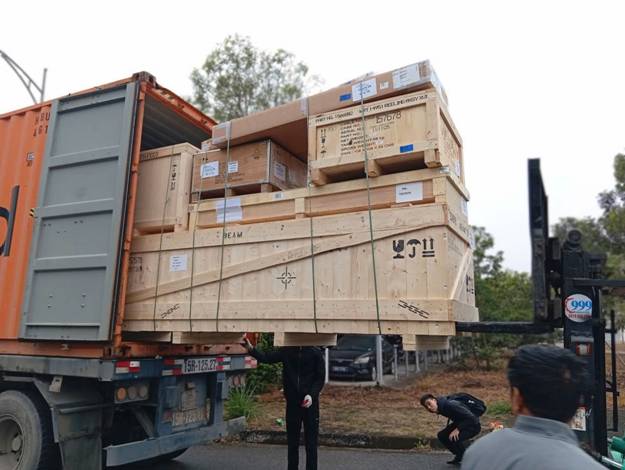Các chuyên gia nước ngoài vận chuyển và lắp đặt máy xạ trị tại Bệnh viện Ung bướu tỉnh Thanh Hoá.