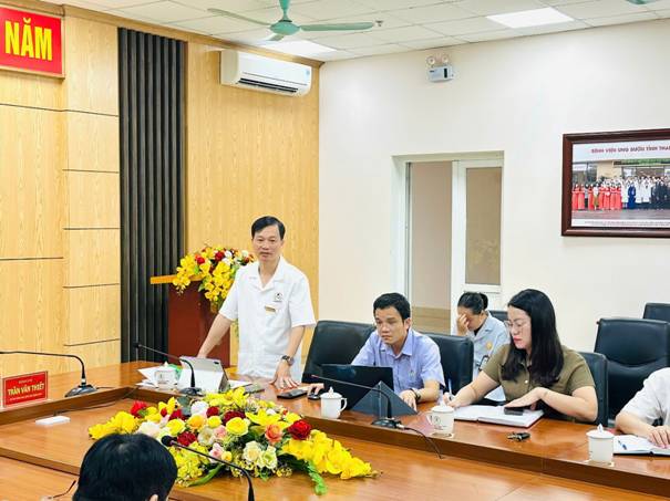 Ảnh: Đồng chí Nguyễn Văn Sơn - Chủ tịch Công đoàn Bệnh viện phát biểu tại buổi trao quà hỗ trợ.