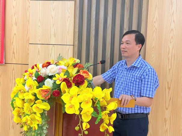 Ảnh : Đồng chí Nguyễn Quang Hưng - Phó Bí thư Đảng ủy, Phó Giám đốc Bệnh viện phát biểu và giao nhiệm vụ cho các đồng chí Đảng viên mới