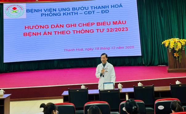Trong bối cảnh chuyển đổi số y tế đang được đẩy mạnh tại Việt Nam, chiều ngày 18/12/2025, Bệnh viện Ung bướu tỉnh Thanh Hóa đã tổ chức buổi tập huấn hướng dẫn ghi chép biểu mẫu hồ sơ bệnh án theo Thông tư 32/2023/TT-BYT của Bộ Y tế nhằm nâng cao chất lượng chăm sóc bệnh nhân và chuẩn hóa quy trình điều dưỡng, đặc biệt trong kỷ nguyên số hóa bệnh án điện tử (EMR).