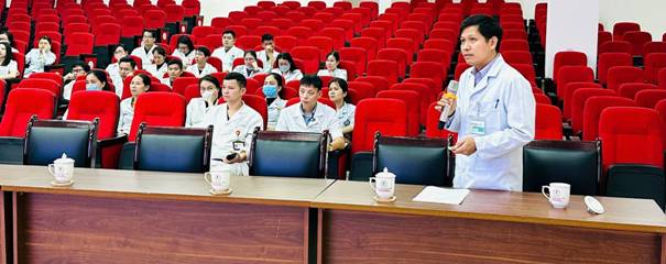 Ảnh: BSCKII. Nguyễn Văn Sơn - UVBTV Đảng ủy, Chủ tịch công đoàn, Phó Giám đốc bệnh viện phát biểu tại buổi tập huấn