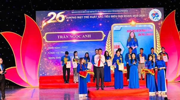 Cũng tại sự kiện trọng thể này, Ban Thường vụ Đoàn Thanh niên UBND tỉnh đã biểu dương, vinh danh 26 gương cán bộ, đoàn viên tiêu biểu giai đoạn 2025-2026. Đây là những cá nhân ưu tú nhất được lựa chọn từ hơn 9.000 ĐVTN đang công tác tại các cơ quan, đơn vị trực thuộc. Trong niềm tự hào chung của Bệnh viện Ung bướu tỉnh Thanh Hóa, đồng chí Trần Ngọc Anh, Phó Bí thư Đoàn Bệnh viện đã xuất sắc trở thành 1 trong 26 cá nhân được vinh danh.