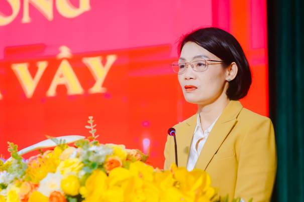 Ảnh: Đồng chí Đỗ Thị Toán - Ủy viên Ban thường vụ - Phó Chủ tịch Uỷ ban MTTQ tỉnh Thanh Hóa phát biểu tại chương trình "Xuân yêu thương-Tết sum vầy"