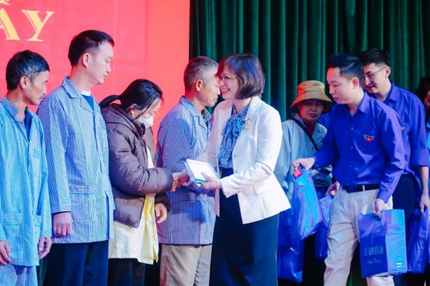 Nhân dịp này, Bệnh viện phối hợp cùng các nhà hảo tâm đã trao tặng gần 500 suất quà (bao gồm tiền mặt, bánh chưng, bánh kẹo, dầu ăn,...) cho các bệnh nhân đang điều trị tại bệnh viện.